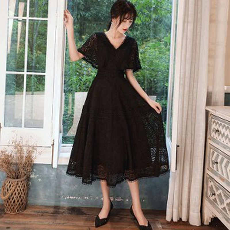 パーティードレス 結婚式 お呼ばれ 二次会 ドレス 刺繍 レース 卒業式 ミモレ丈 ワンピース 黒 同窓会 着痩せ 代 30代 成人式 演奏会の通販はau Pay マーケット ビューティー アミコ